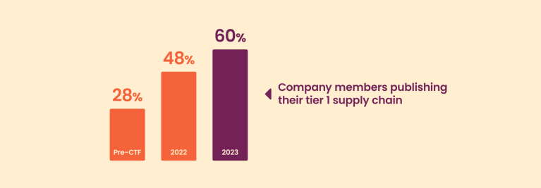 - Publishing the CTF and partnering with the Open Supply Hub - becoming the first multistakeholder initiative to mandate publication of tier one suppliers directly on the platform.