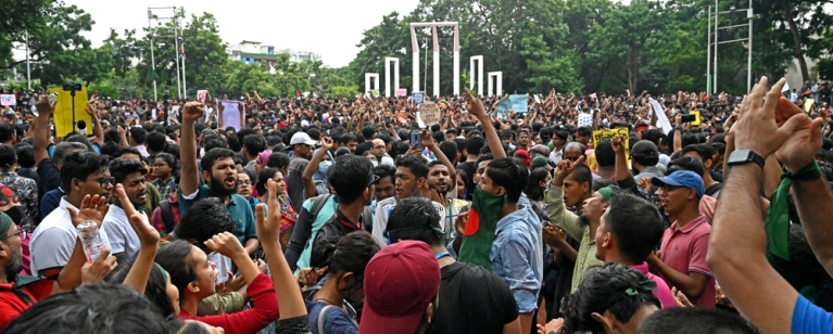 - Mid July: Government and the Chhatra League (the ruling party aligned student group) clash violently with protesters resulting in 6 deaths. Universities closed, with internet cut off across the country.
